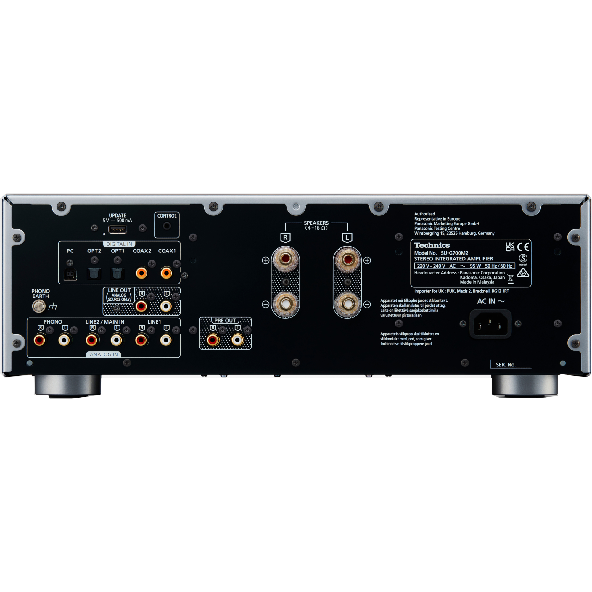 Technics SU-G700M2 Grand Class – amplificator stereo integrat (mecanică JENO ENGINE, LAPC, intrare PHONO, design cu trei benzi), argintiu